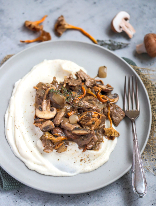 Beef & Mushrooms with Cauliflower Mash